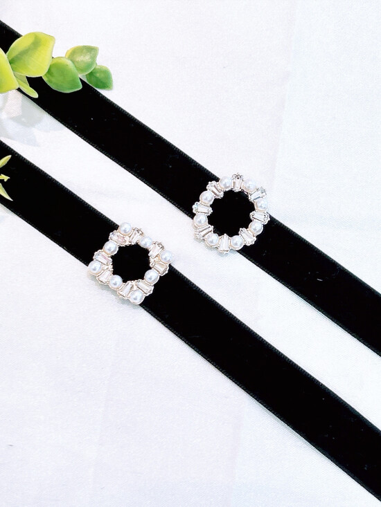 ベロア生地にとても相性良いラインストーンとパールを使用したこれからの季節にピッタリのチョーカーでございます。